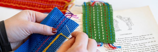 Her får du muligheten til å brodere ditt helt eget bokmerke. Vi finner frem fargerike tråder, aidastoff og butte kanavanåler, og viser noen enkle og fine sting som passer godt når du skal lære å brodere.
