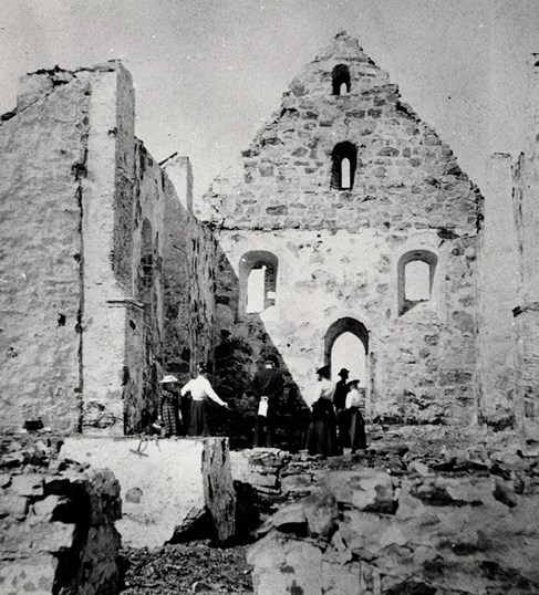 På denne maidagen varmet sola godt da kirkegjengerne gikk hjemover etter en litt kjølig stund med gudstjeneste i steinkirken. Man gjorde lurt i å ha ull innerst på søndager. Men med ett var det mer enn bare sola som varmet. Folk snudde seg og trodde ikke det de fikk se; kirken sto i full brann. Den 18. mai 1900 brant Øyestad kirke ned til grunnen, kanskje på grunn av en bråtebrann som hadde kommet ut av kontroll i nærområdet. Selv om middelalderkirken var bygget i stein, sto flammene høyt mot den blå himmelen. Noen av de nærmeste naboene rakk å hente brannbøttene som de hadde hengende under mønet på huset i tilfelle brann. Men de fant raskt ut at det ikke gikk å temme flammene, som snart dekket både tårn og tak. Etter noen kaotiske og dramatiske timer sto kun deler av de tykke murveggene igjen. Mye interiør og inventar ble slukt av flammene. Den nærmeste naboen sto igjen med alterkaret fra 1542 i hånda. Folk gikk inn i det som var igjen av det tidligere så hellige kirkerommet og så opp mot himmelen. Hvordan kunne dette skje?
