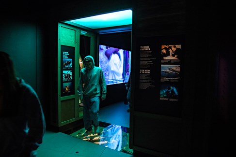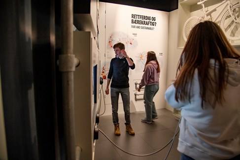 Elevene får omvisning i utstillingen om slaveskipet «Fredensborg»s siste reise, som er både lokalhistorie og verdenshistorie.